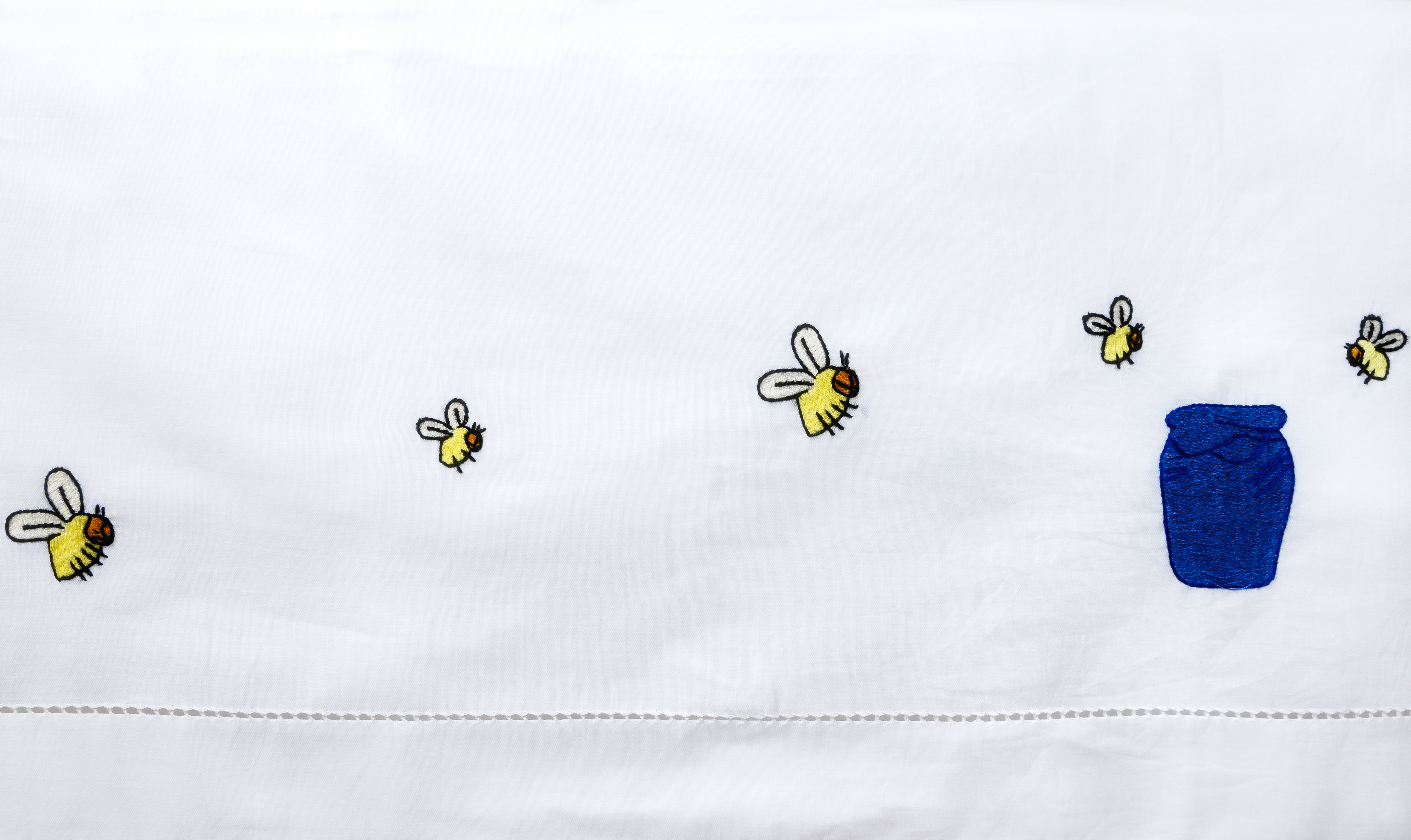Do not bleach. Bleaching and harsh detergents could damage the embroidery.