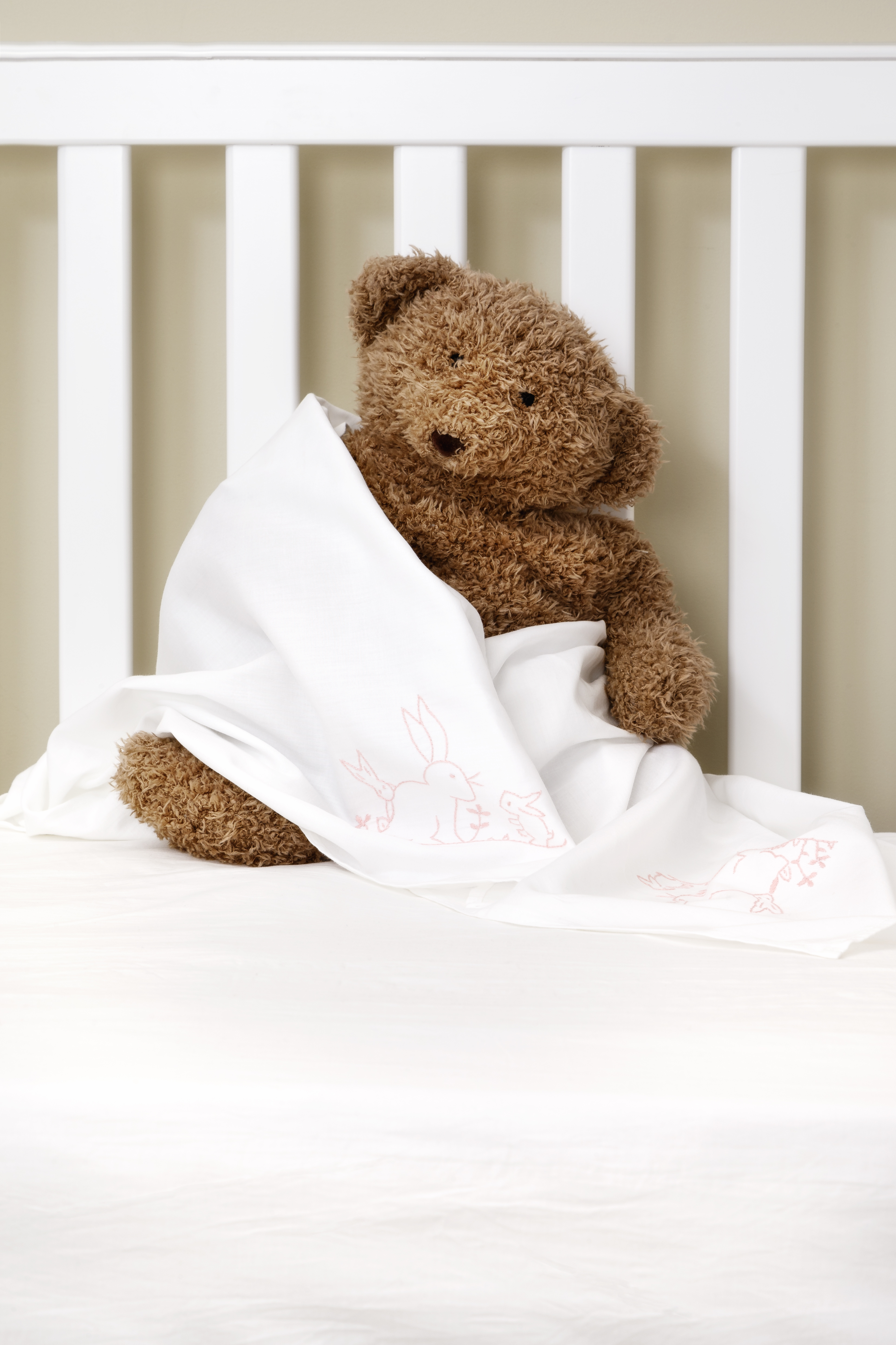This beautiful, yet versatile handcrafted pink bunny design baby wrap has so many uses. Use it in the pram, while feeding or just for snuggling. Its handcrafted design on 100% soft cotton makes it a must for any baby bag. Ideal for using everyday. Available in one size only. Also available in Blue Bunny design.